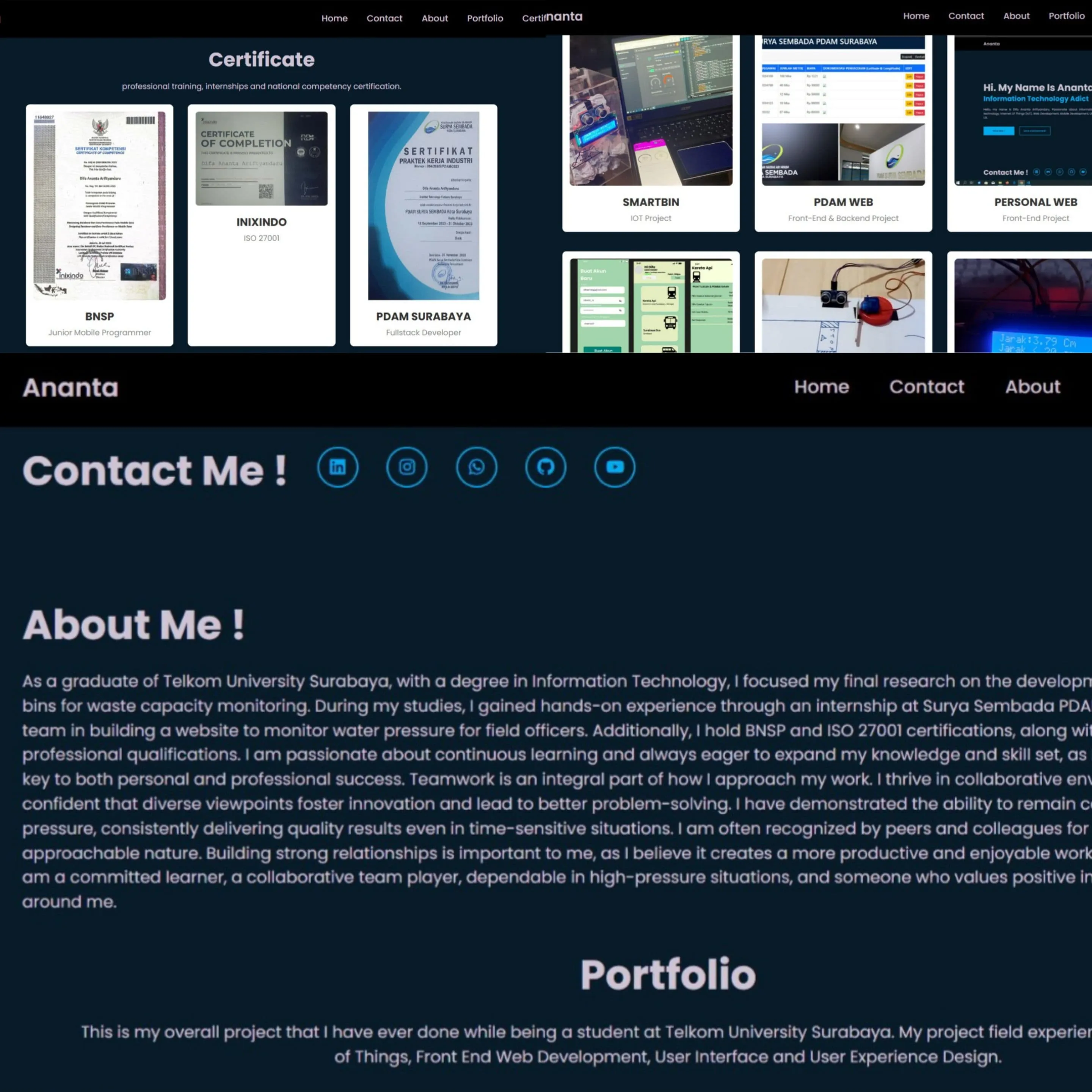 This is my overall project that I have ever done while being a student at Telkom University and professionals Worker. My project field experience is about Web & App Development, System & Business Analytics, Internet of Things, User Interface and User Experience Design.